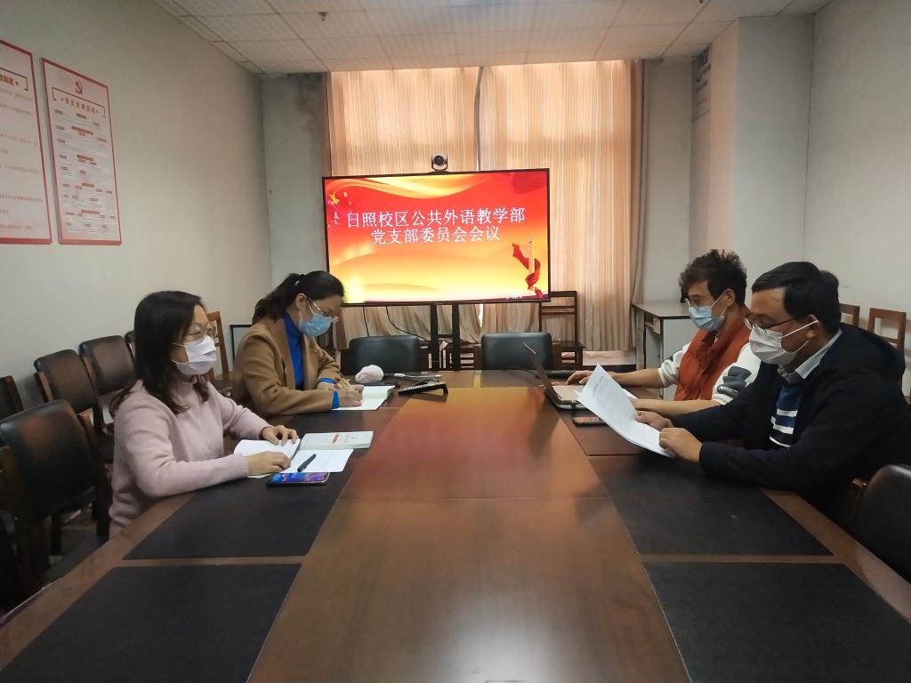 11月17日,B体育(中国)一站式服务官网日照校区党支部在JC1002召开支部委员会会议。会议由支部书记杜庆凤主持,除一位在外访学的委员外,其它四位委员参加了会议。