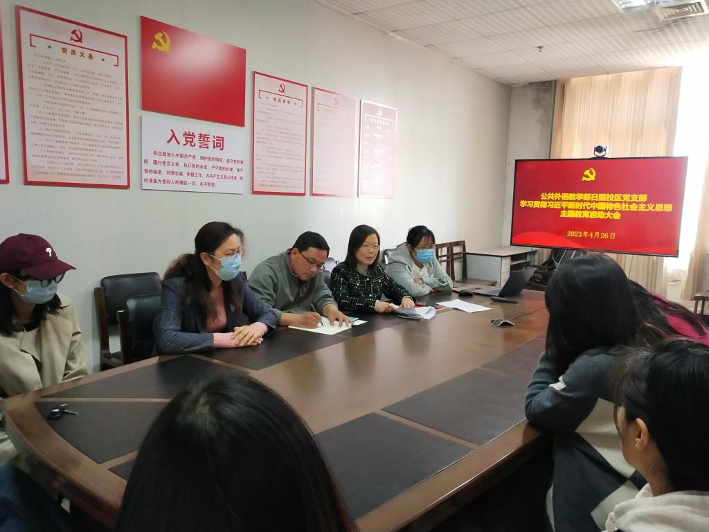 4月26日,B体育(中国)一站式服务官网日照校区党支部在JC1002会议室召开学习贯彻习近平新时代中国特色社会主义思想主题教育启动大会,支部书记杜庆凤主持,全体党员参加。