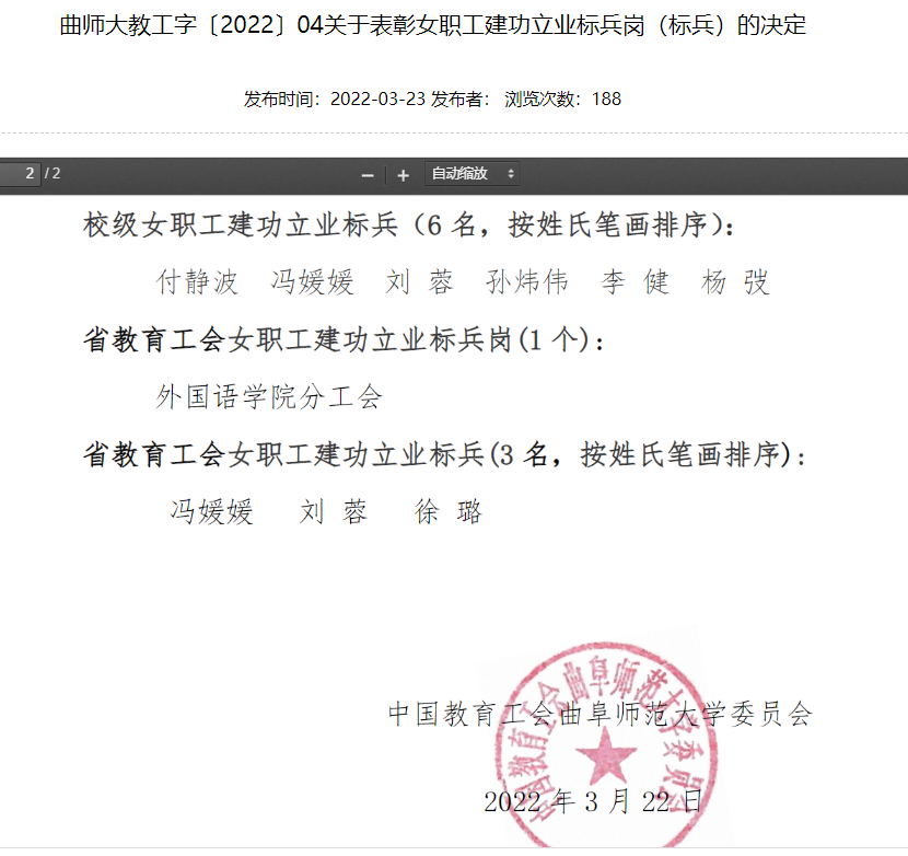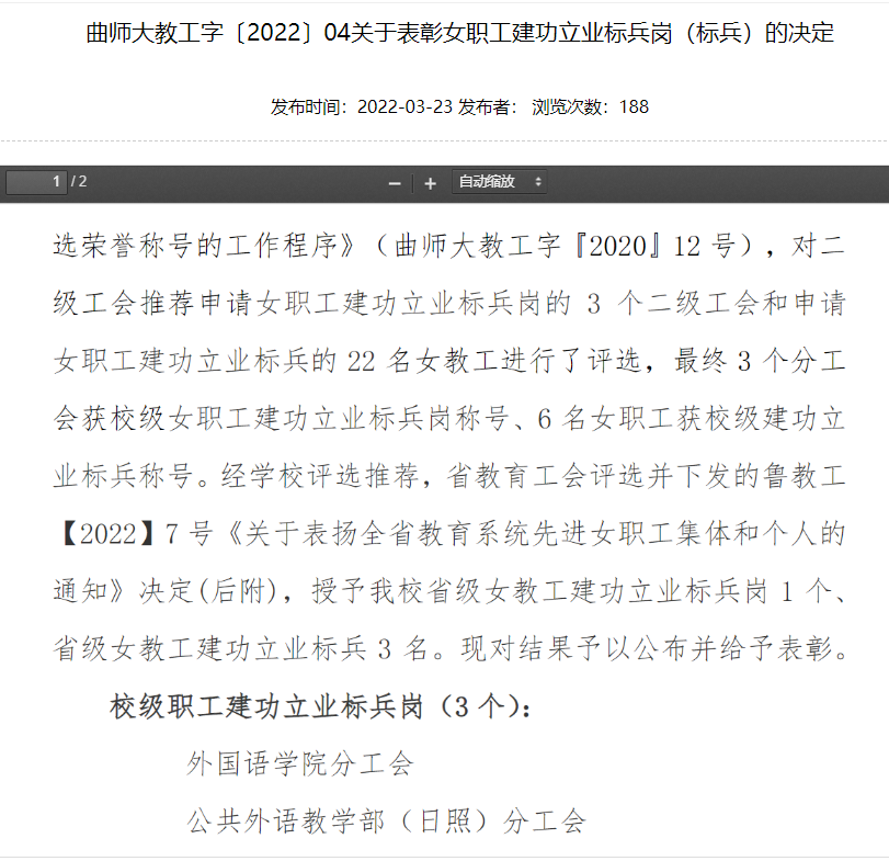 B体育(中国)一站式服务官网(日照)分工会荣获B体育官网“校级职工建功立业标兵岗”先进集体称号;B体育(中国)一站式服务官网(曲阜)分工会主席李健老师荣获B体育官网“校级女职工建功立业标兵”个人荣誉称号。