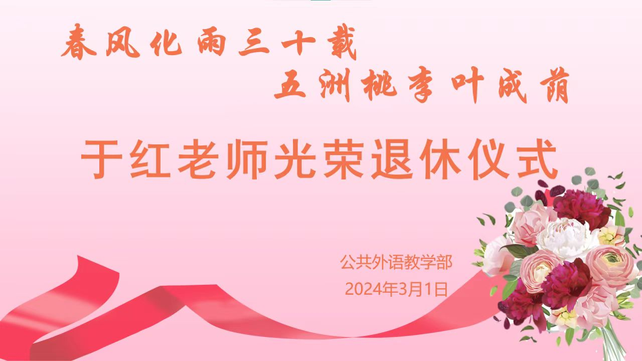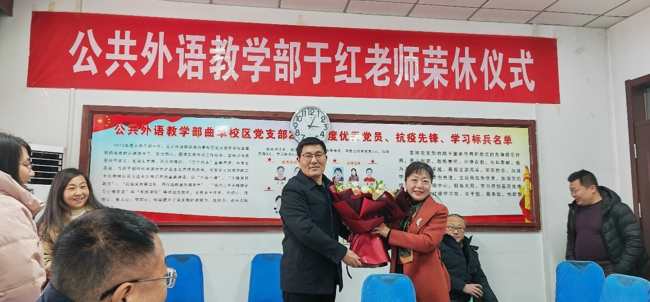 时光荏苒,倏忽三十寒暑。2024年3月1日,B体育(中国)一站式服务官网举行了于红老师的荣休仪式。B体育(中国)一站式服务官网领导及全体教师出席了仪式并进行座谈。部工会主席刘淑杰老师主持了仪式。会上,王福祥主任代表全体教师向于红老师献上精心挑选的鲜花,表达了对于红老师三十余年兢兢业业、任劳任怨、辛勤工作的认可与感谢。