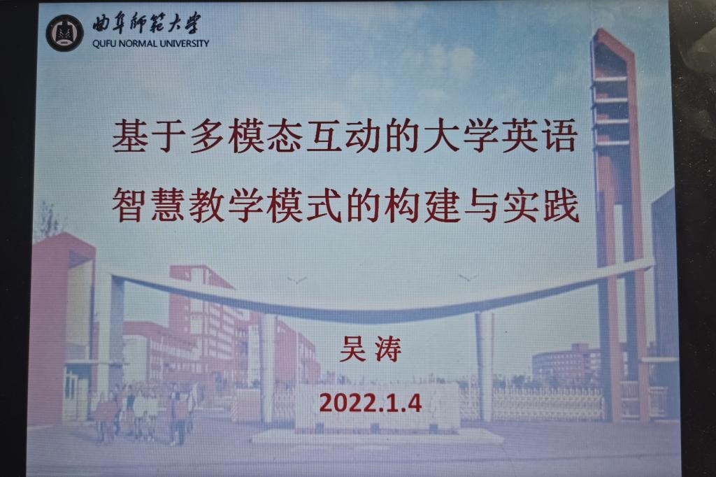 为进一步推广大学英语教学改革的先进经验和典型做法,1月4日,B体育(中国)一站式服务官网举办大学英语教学研究沙龙,本次活动通过视频会议形式在两校区同步进行。本期教学研究沙龙共有4个主题,分别由孙海珊、董伟、吴涛、衣进韬等4位老师就各自的业务专长及其近期取得的成果做了汇报与展示,此次沙龙由基础教研室(日照校区)主任张英主持。