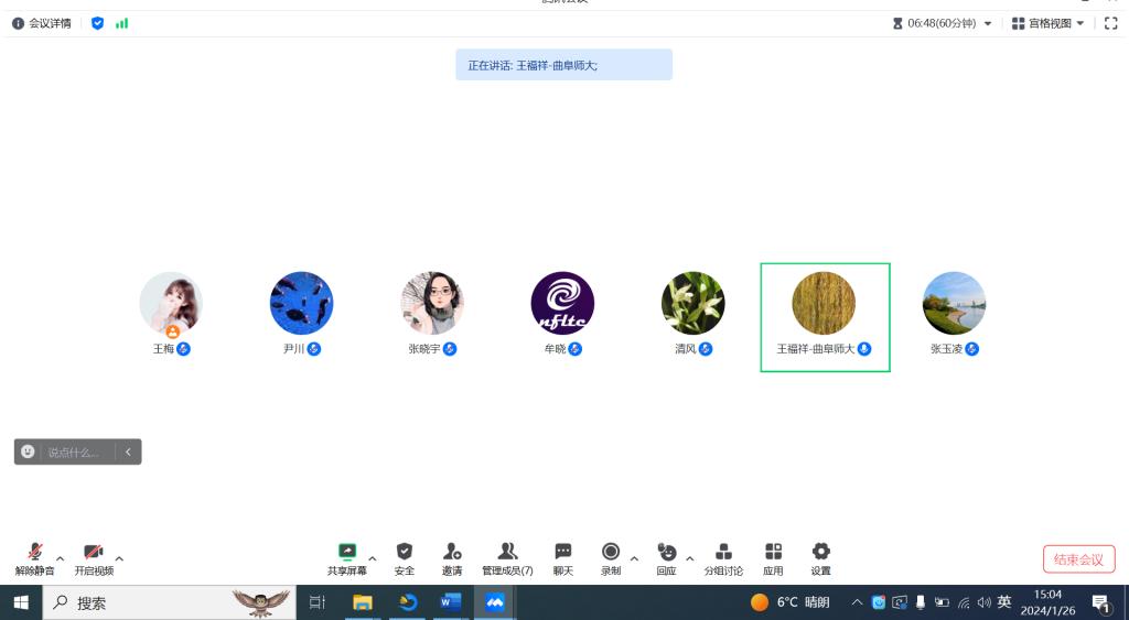 此次学术会议,牟晓、王梅两位老师就各自研究领域进行了分享,王福祥教授对两位老师的报告给予悉心指导,张晓宇博士及其他团队成员也积极参与了本次学术研讨。此次学术沙龙不仅促进了团队成员之间的交流,而且为推动中国传统文化教学实践与对外翻译做出了一定探索。