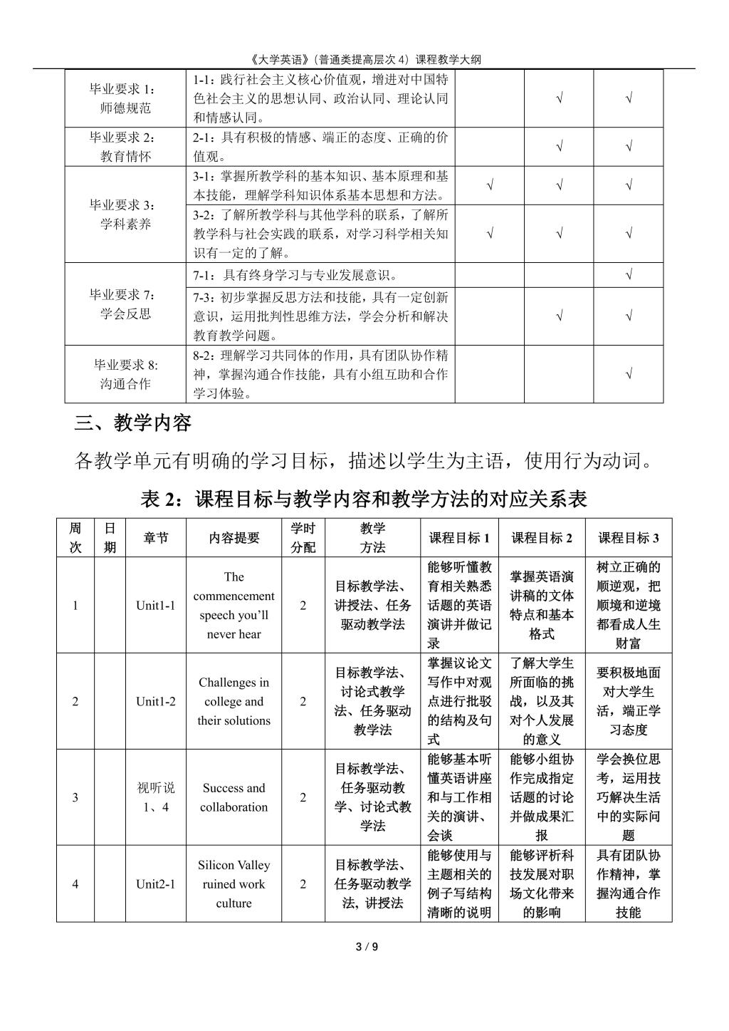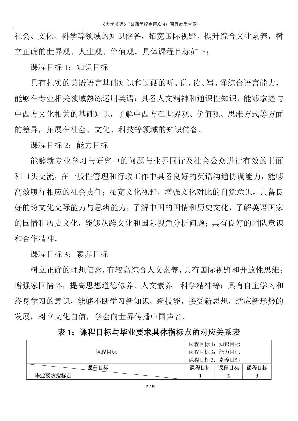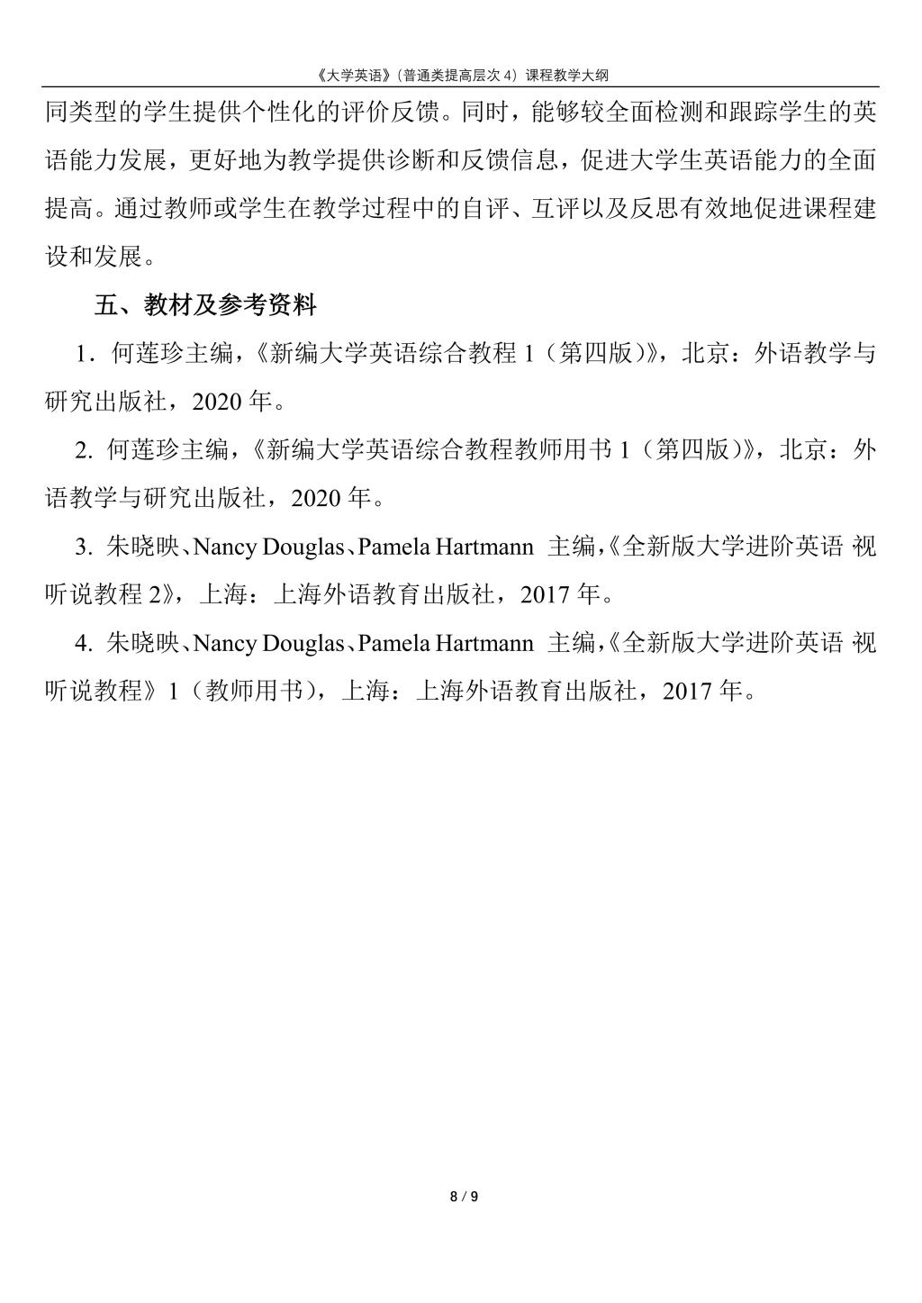 大学英语(普通类提高层次4)课程教学大纲(2022版)