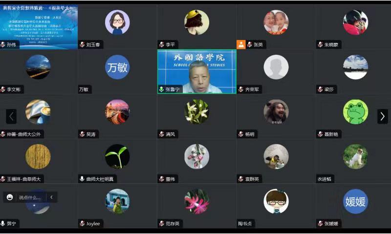7月19日上午,B体育(中国)一站式服务官网邀请我校优秀校友、南京林业大学外国语学院副院长、张鲁宁教授作“大学英语一流课程建设”线上专家报告会。报告会由副主任孙伟主持,主任王福祥、各教研室主任、各课程建设团队负责人及其全体骨干成员参加。