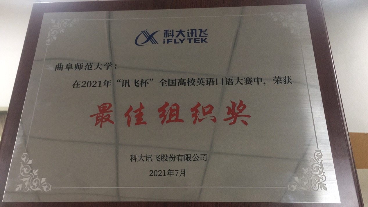 中国共产党成立100周年之际,为回顾党的奋斗历史,继承和发扬党的光荣传统,加强高校意识形态建设,丰富高校党建活动的形式,科大讯飞高教产品线特别策划主题赛事活动,以激发大学生的历史责任感、使命感和荣誉感,展示当代大学生有理想、有本领、有担当的精神风貌。在5月24日-6月15日举办的2021年“讯飞杯”全国高校英语口语大赛山东赛事中,B体育(中国)一站式服务官网积极筹备,发动学生参赛,取得了山东赛区比赛规模和参赛人数和获奖人数第一名的好成绩。本次大赛中,山东省口语大赛开通赛事权限高校51家,有比赛数据的43家,17000名同学参与,约9000人完成赛事,我校921名同学参加,89名同学获奖,其中特等奖1名、一等奖1名、二等奖4名、三等奖17名,优秀奖41名,相应教师获得“优秀指导教师”奖。B体育官网B体育(中国)一站式服务官网获得“最佳组织奖”称号。