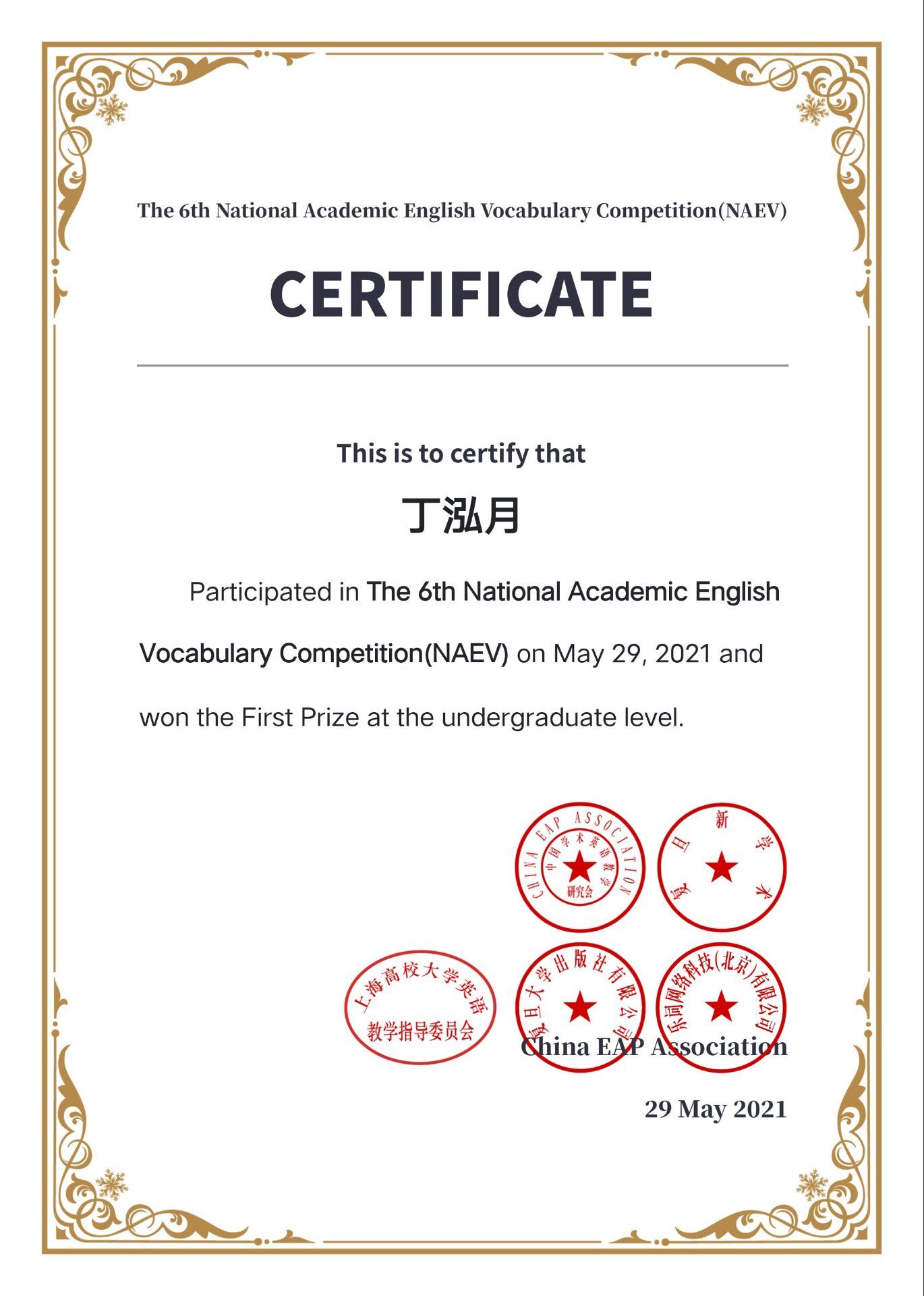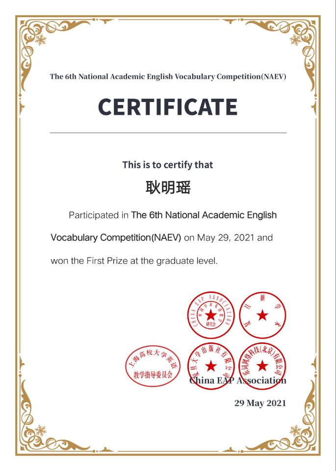 近日,由中国学术英语教学研究会、上海高校大学英语教学指导委员会、复旦大学出版社主办,曲师大B体育(中国)一站式服务官网和曲园学术英语社团承办的“第六届全国大学生学术英语词汇竞赛”圆满结束。继去年我校两名学子获全国一等奖后,本次大赛,十名曲园学子再次获得全国一等奖。