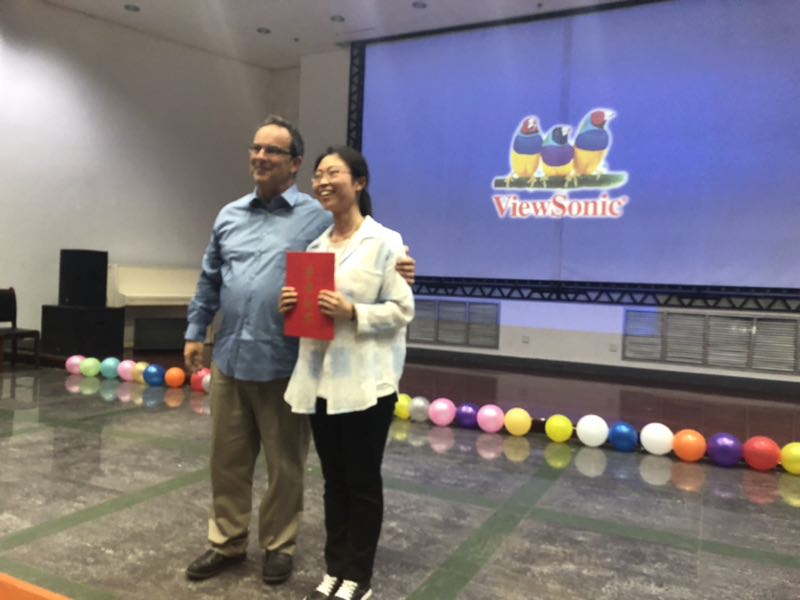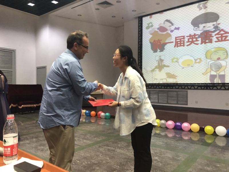 最后考克斯女士对整场比赛做了点评,祝贺曲玉清同学获得一等奖,张程程、李贤同学获得二等奖,崔悦、汲长宁、薛新雨同学获得三等奖。