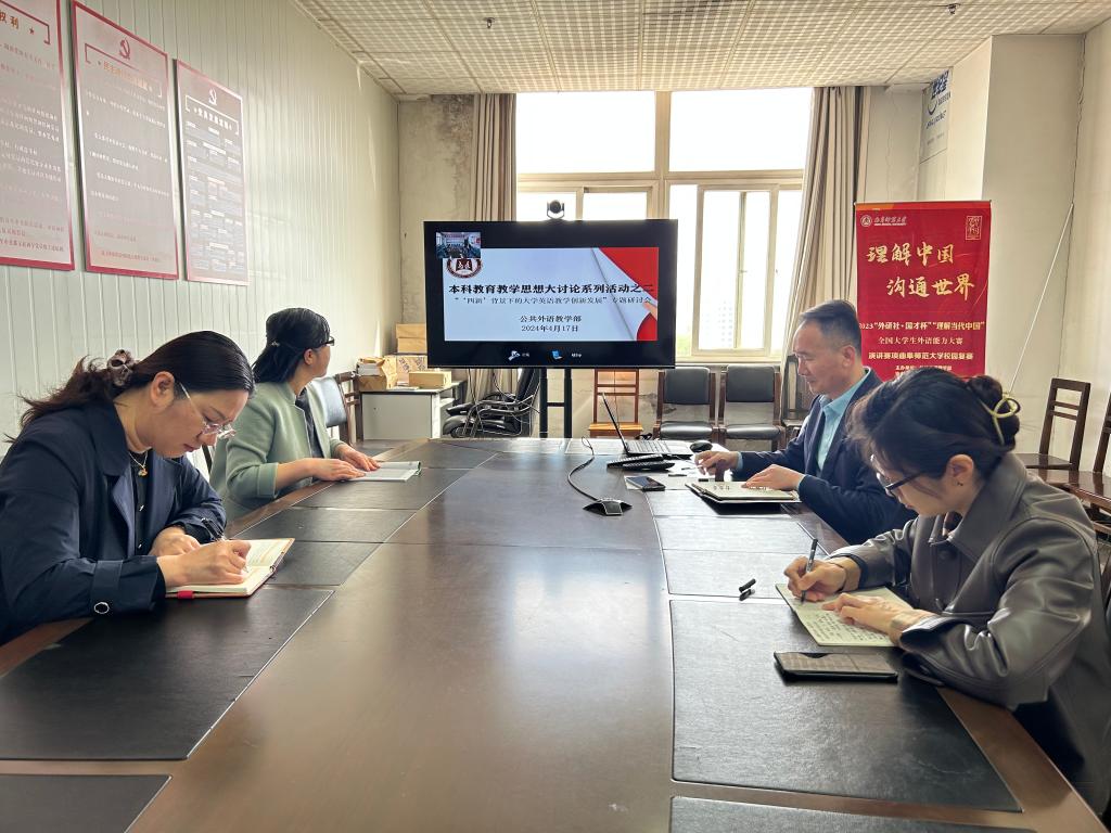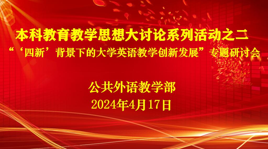 4月17日,B体育(中国)一站式服务官网召开本科教育教学思想大讨论系列活动之二——“‘四新’背景下的大学英语教学创新发展”专题研讨会。研讨会由B体育(中国)一站式服务官网主任王福祥主持,教学部领导班子全体成员和两校区教研室主任等业务骨干参加了本次研讨。