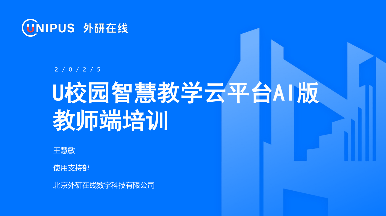 此次培训由北京外研在线数字科技有限公司的王慧敏老师主讲。培训伊始,王慧敏详细介绍了 U 校园 AI 版的产品定位,它是面向高校外语教学的一站式、个性化教学平台,致力于为院校外语教学提供混合式教学解决方案。其特色功能亮点突出,借助大语言模型、机器学习和自然语言处理技术,打造了 AI 助教、AI 写作评阅、AI 口语陪练、AI 翻译评阅和 AI 口语评阅等功能,还采用 1+N+X 教学模式、在线交互式课件以及 AI 学情分析等,助力教师实现趣味教学、智慧教学。
