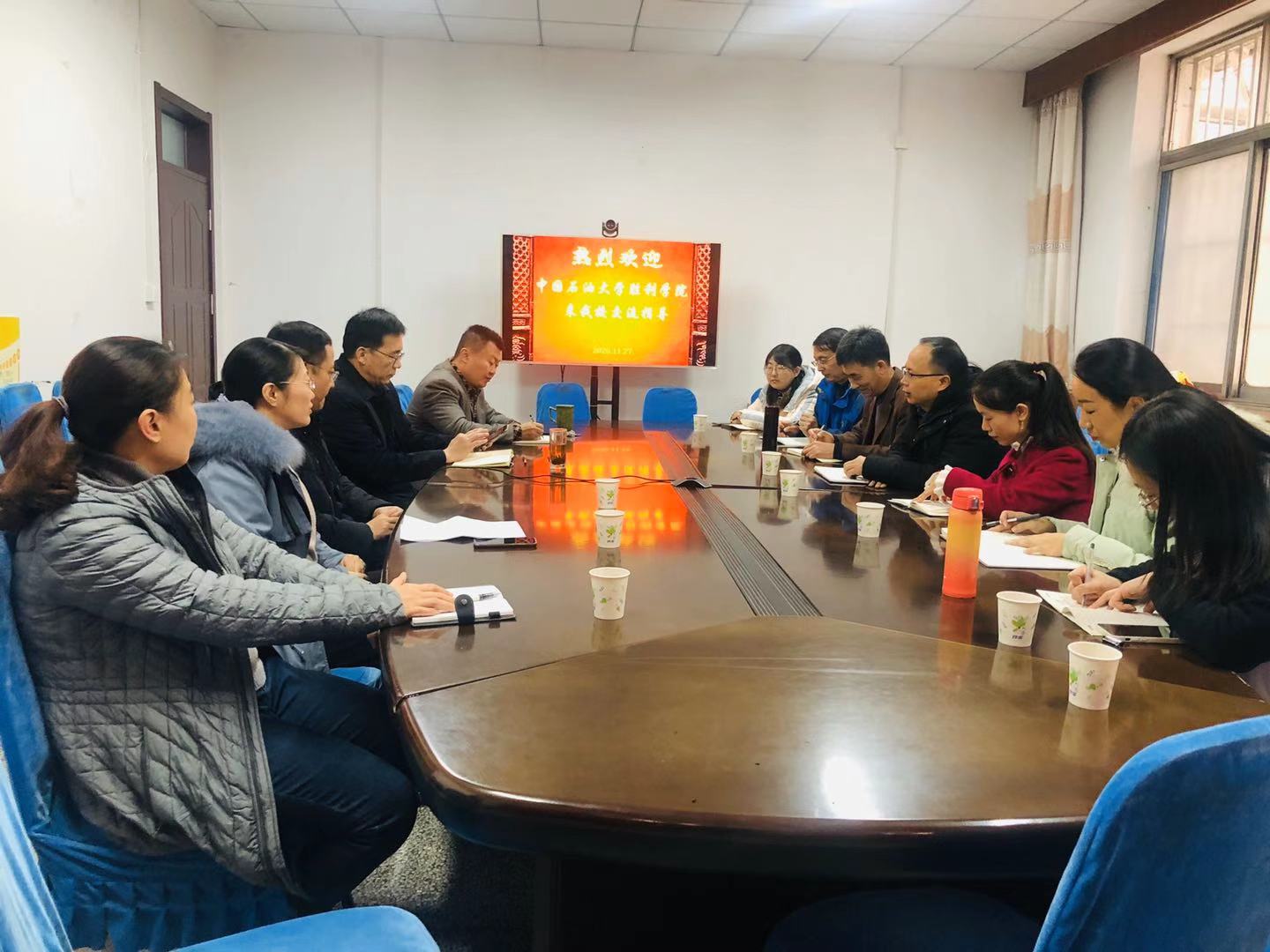 2020年11月27日,中国石油大学胜利学院基础科学学院副院长孙涛率外语系主任盛庆全、副主任庞晓峰以及骨干教师一行7人来我部访问。B体育(中国)一站式服务官网主任王广成、主任助理王显明亲切会见了来访客人,在单位会议室召开了两校交流会。会议邀请了外国语学院院长秦洪武、院长助理高歌参加了交流。