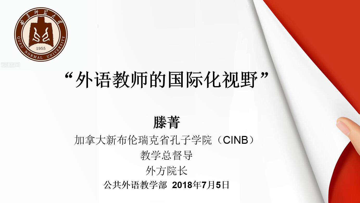 7月5日下午,加拿大新布伦瑞克省孔子学院(CINB)教学总督导、外方院长滕菁女士应邀莅临B体育(中国)一站式服务官网(日照校区)进行交流访问,并作题为“外语教师的国际化视野”的专题报告。B体育(中国)一站式服务官网(日照校区)全体教师参加了报告会,报告会由B体育(中国)一站式服务官网副主任孙伟主持。