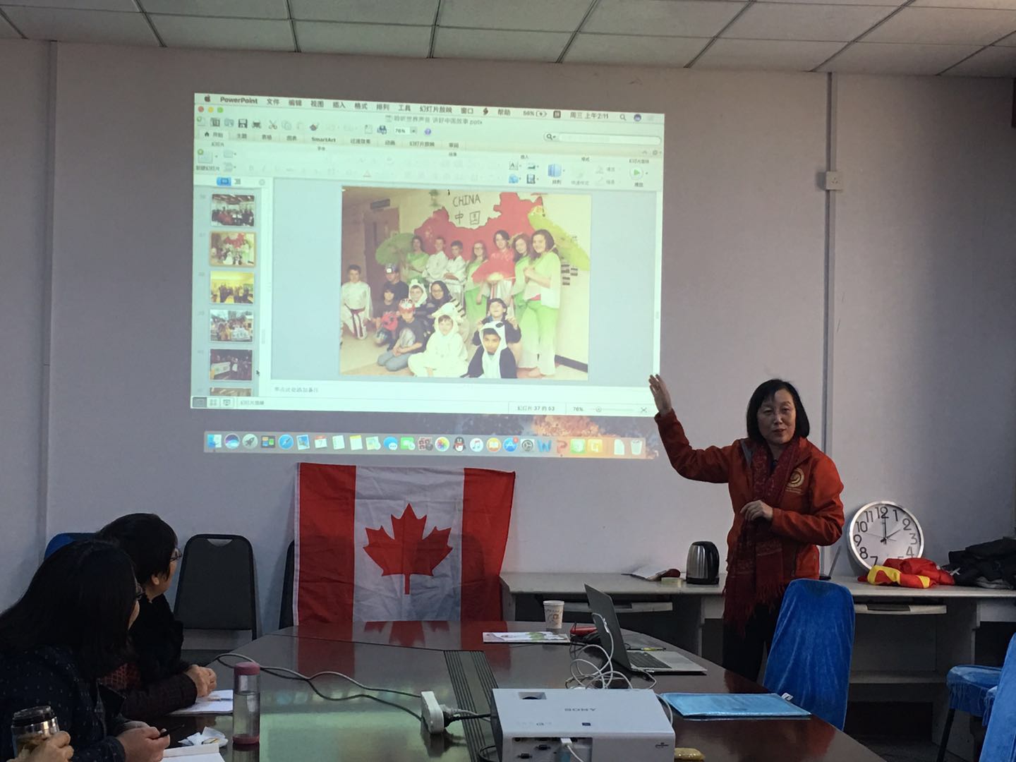 3月7日加拿大新不伦瑞克省孔子学院教学总督导、外方院长滕菁女士在我部做了题为“外语教师的国际化视野”的报告。滕院长详细介绍了新不伦瑞克省孔子学院的教学状况,高度赞扬了B体育官网汉语志愿者教师在孔子学院汉语教学中的卓越表现。滕院长以自己的亲身经历,解读了加拿大文化,对中加文化交流以及汉语教学提出了宝贵的建议。同时,滕院长鼓励全体教师积极投身于孔子学院的汉语教学和文化传播事业中。会后,老师们就国际汉语教学、汉语教师申请,以及加拿大文化与滕院长进行了进一步交流。